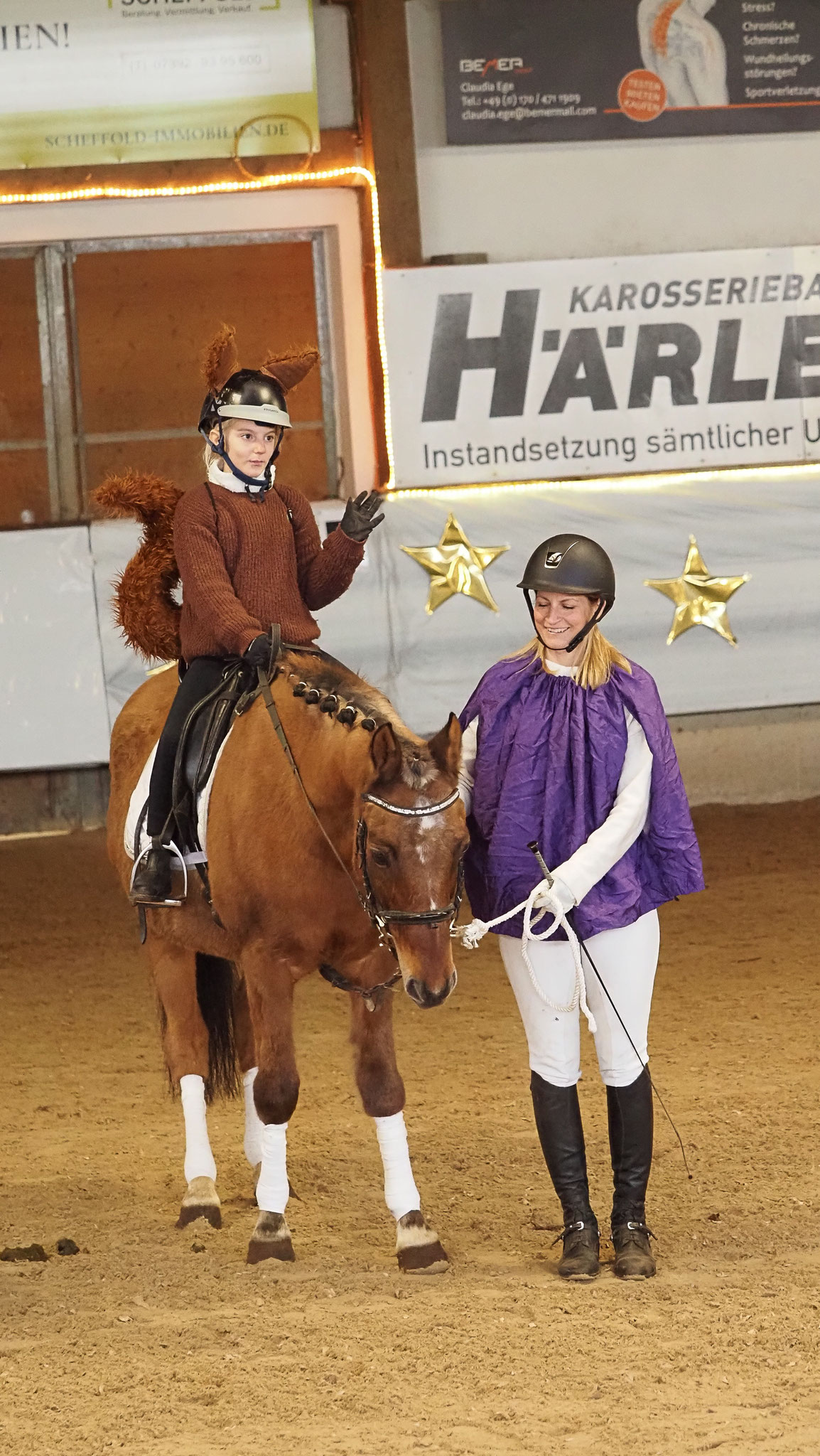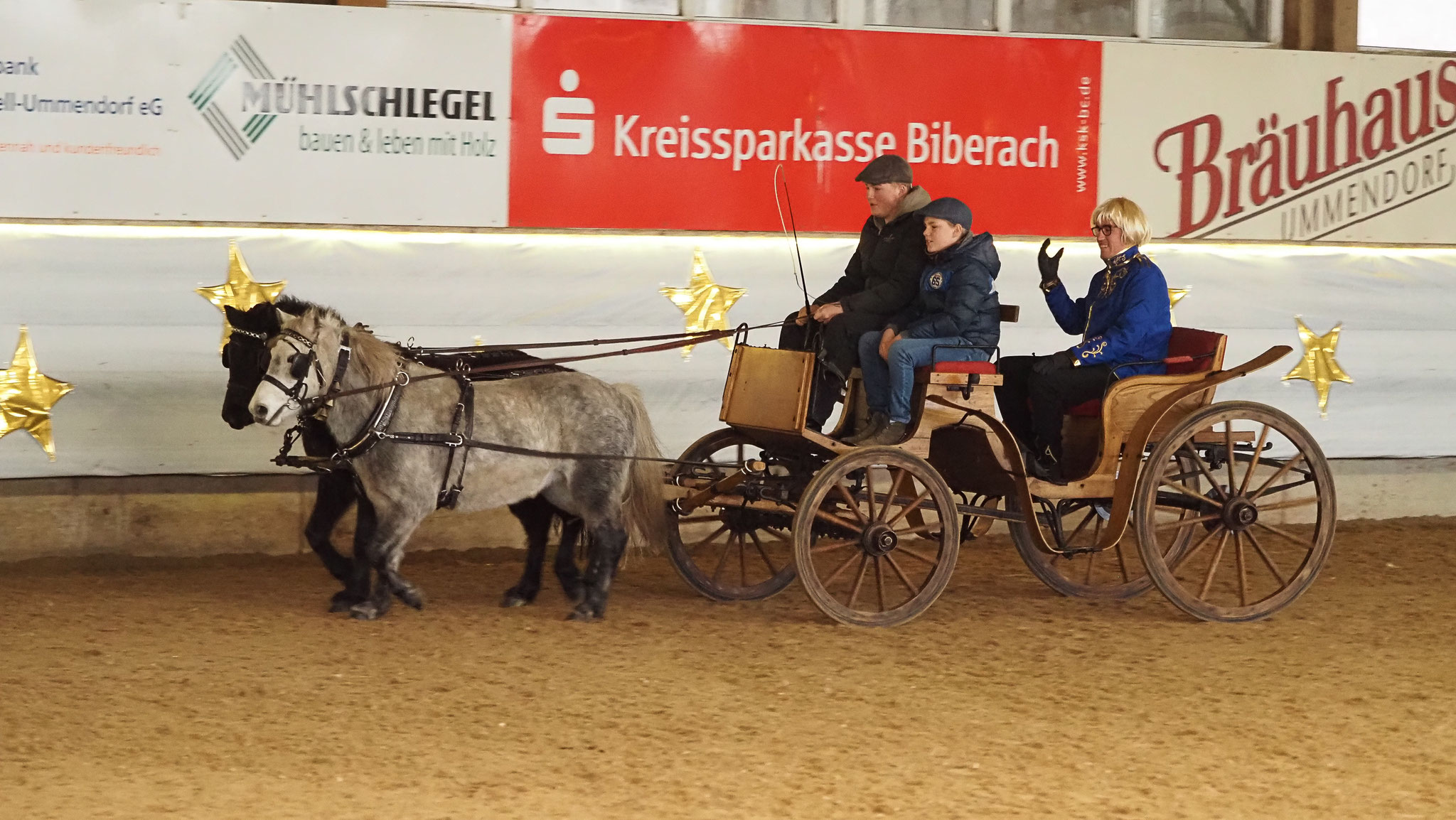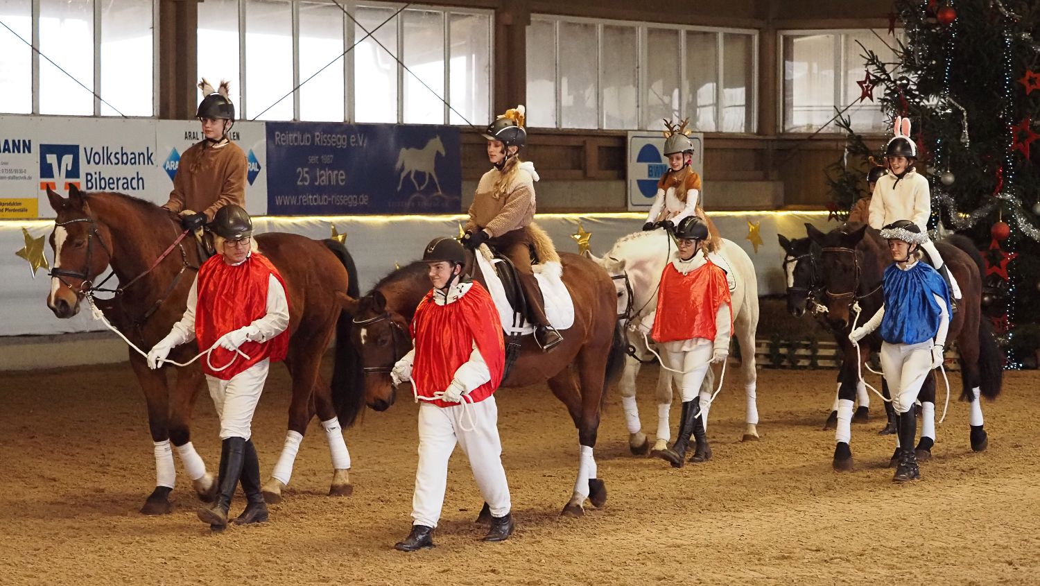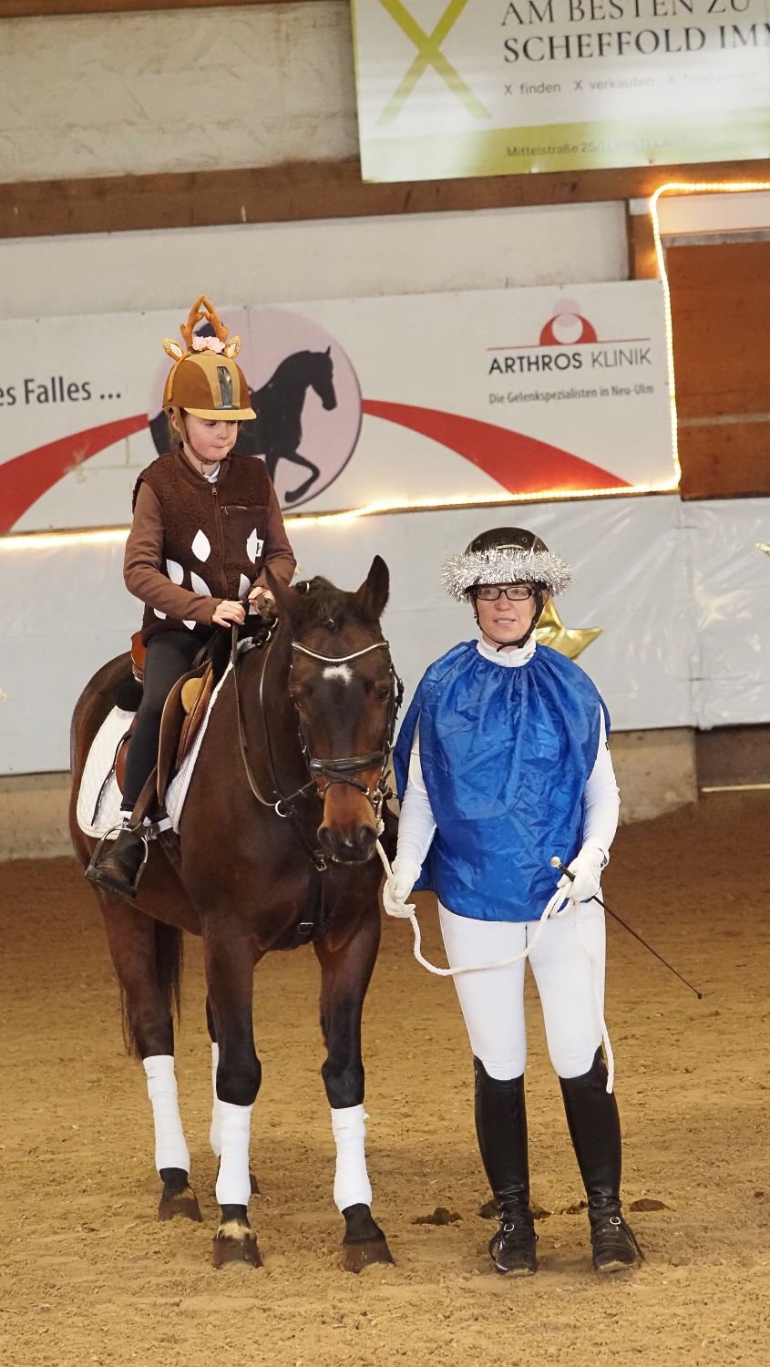 Die festlich und aufwendig geschmückte Reithalle, kombiniert mit dem abwechslungsreichen und kurzweiligen Programm, sorgte für eine rundum weihnachtliche Atmosphäre und hielt die zahlreich erschienenen Zuschauer bis zum Schluss in ihrem Bann. Ein besonderer Höhepunkt wartete am Ende der Veranstaltung: Der Nikolaus fuhr standesgemäß mit seiner Ponykutsche in die Halle ein und verteilte an die kleinen Gäste süße Hefemäuse – strahlende Kinderaugen inklusive.